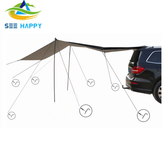 Ang Car Side Canopy ay isang magaan at portable na sunshade ng kotse na nakakabit sa gilid ng iyong sasakyan at nagbibigay ng proteksyon sa araw, ulan at hangin para sa mga pasahero at sasakyan. Gumagamit ito ng 2 plantsa