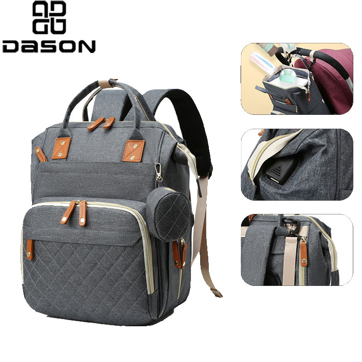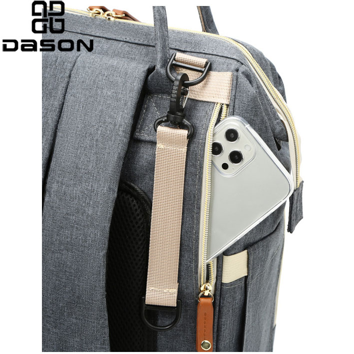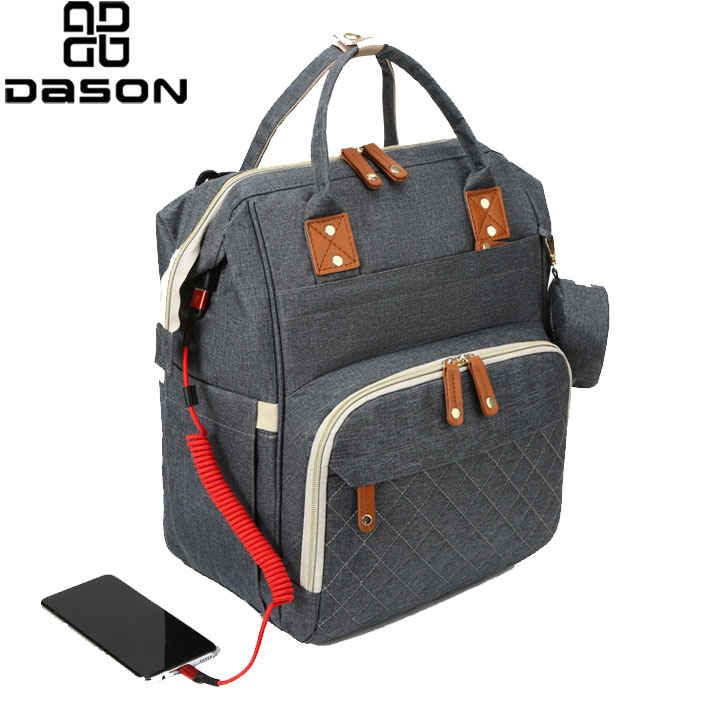 Ang mummy bag na backpack na ito na may dagdag na coin pouch ay maginhawa sa mabilisang pag-access kapag namimili nang may dala kasama ang iyong sanggol. May USB charging port, at MOQ na 2pcs lang na may maraming kulay para sa iyong pipiliin sa D.grey,L.gery.Blue, Pink, Green ,Itim atbp.