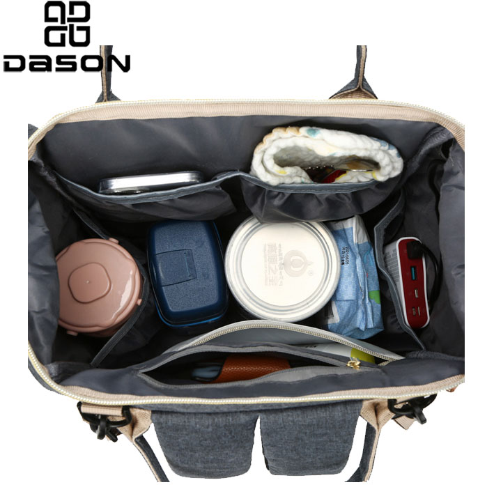 Malaking kapasidad at maraming bulsa para lagyan ng dalawang bote ng gatas; isang bote ng tubig; dalawang kutsara, dalawang bib, napkin; cotton na sombrero, 4 na set ng mga damit, tuwalya at lampin atbp.