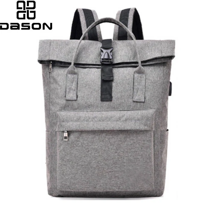 Ang roll top backpack na ito para sa mag-aaral sa kolehiyo na may panlabas na USB port ay maginhawa