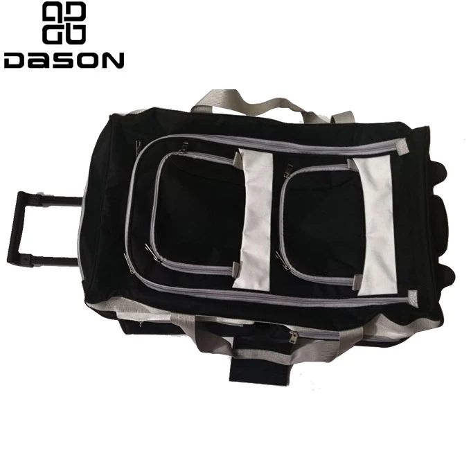 Full lined 210D polyester para sa may gulong na Duffel Luggae na ito, gawa sa matibay na 600*600D wear-resistant na tela, na may malalaking makinis na metal na zipper
